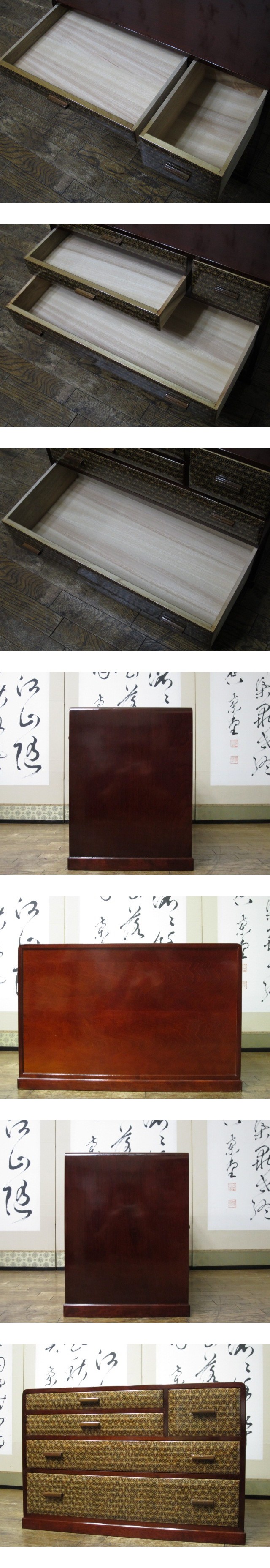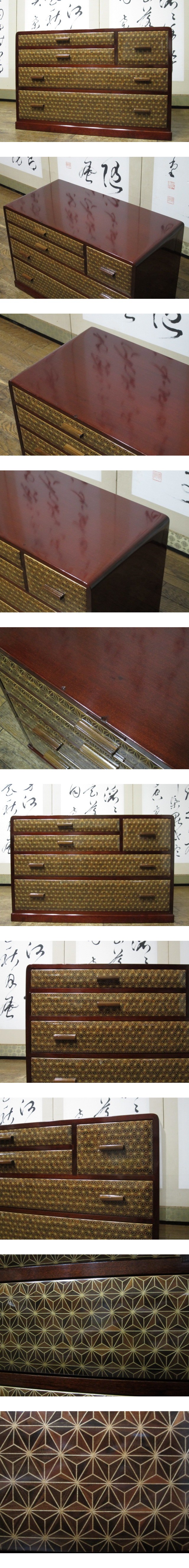 皇室献上品 伝統工芸 箱根寄木細工 木象嵌 麻の葉文様 民芸 箪笥 26万円/手許箪笥/枕箪笥/小箪笥/手元箪笥/抽斗/引き出し/箱根細工/和家具 收藏