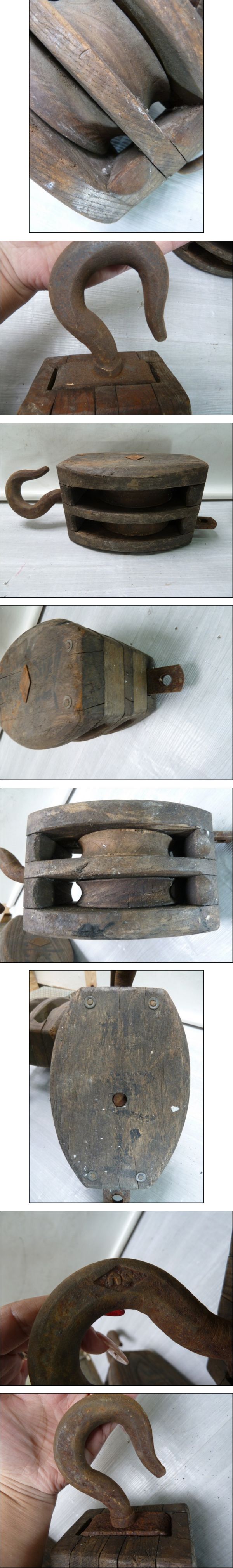 @木製 滑車 2個セット 運送屋さん廃棄部品 フックと下部は金属製(磁石が付く) アンティーク レトロ ヴィンテージ 古民具 工場 收藏