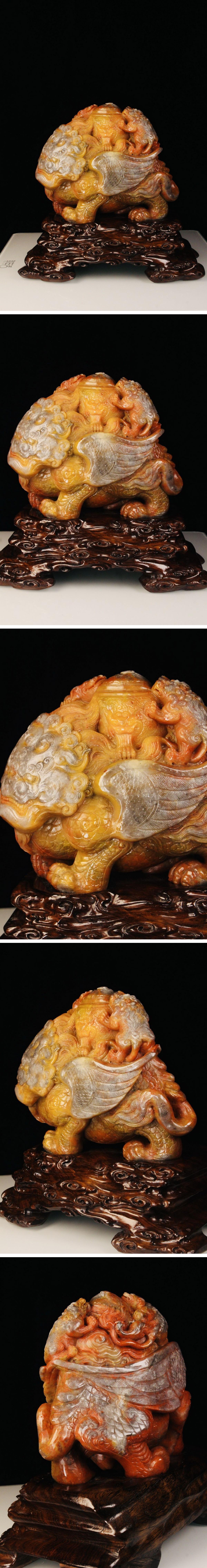 【清】関西某オークション購入 中国・清時代 寿山田黄石 瑞獣紋彫り物 極細工 古置物 古擺件 中国古美術7L12-XC7 收藏