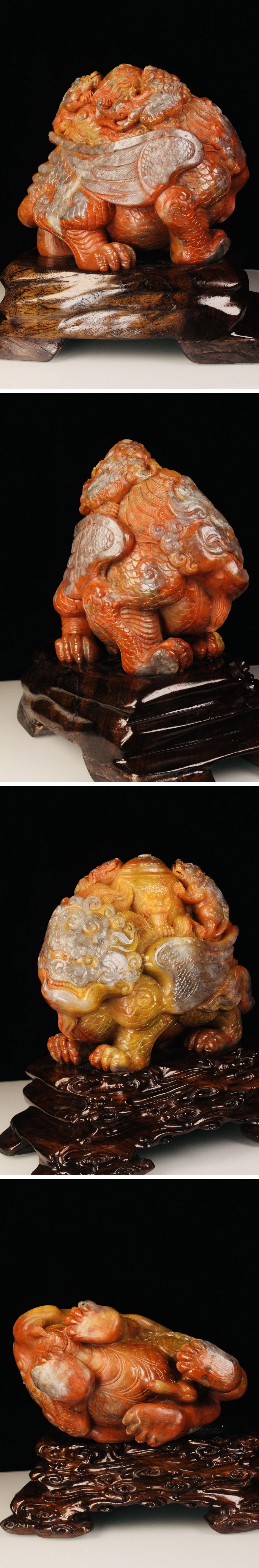 【清】関西某オークション購入 中国・清時代 寿山田黄石 瑞獣紋彫り物 極細工 古置物 古擺件 中国古美術7L12-XC7