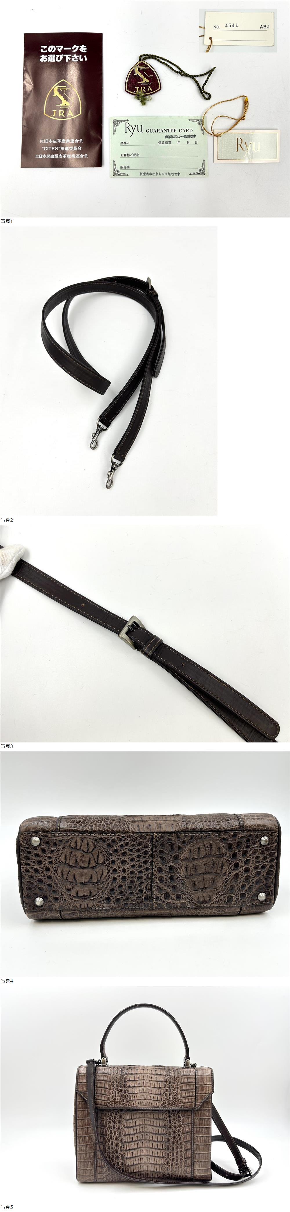 ◆ Ryu リュー JRA カイマン 2WAY ハンドバッグ ショルダーバッグ ブラウン レザー ワニ 皮革 ◆ 商品説明に追加画像あり 【C2708】 收藏
