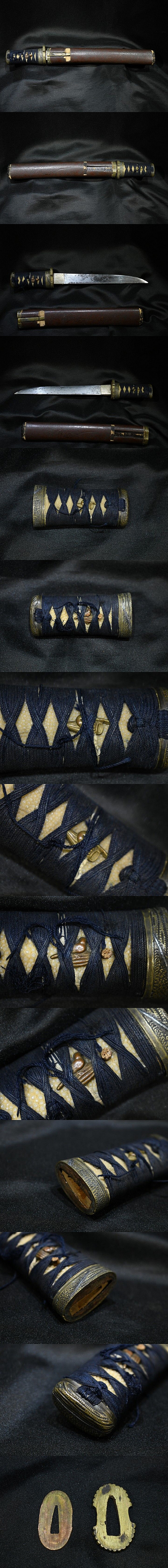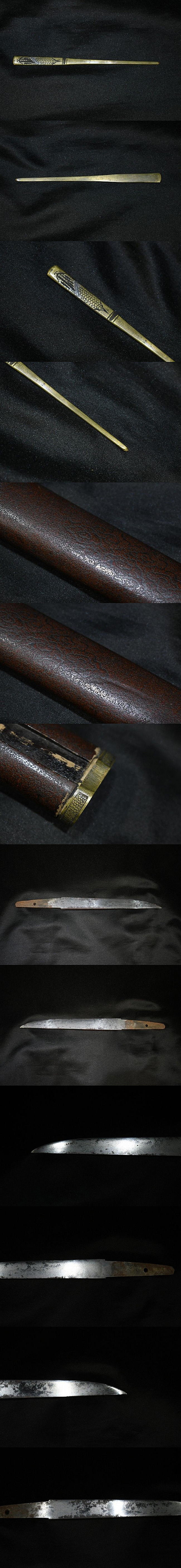 【歩】旧家蔵出し品 無銘刀 出来よい古拵え 笄 研ぎあがり楽しみな一振り 六寸七厘 短刀 收藏