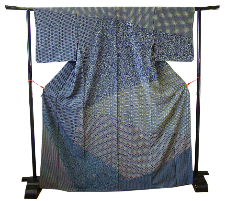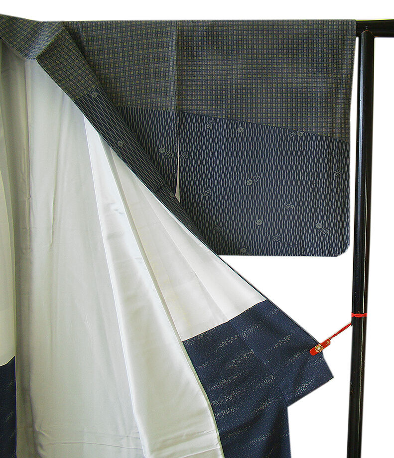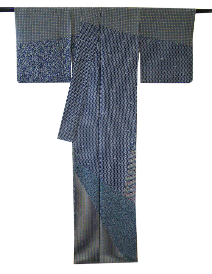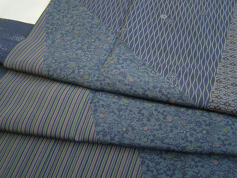 | 商品説明 | こちらのお品は「袷」でございますので、10月~5月までお召頂ければと思います。 とてもしなやかで柔らかな手触りのさらりとした着心地良い重めの極上ちりめん地の生地、 紺鼠色地に茶鼠、青碧、国防、薄茶、抹茶、葡萄鼠色等の流水、花草、縞、花菱、よろけ縞 等の寄せ柄の染柄、 八掛は紺鼠色に灰色の染柄(正絹)、幅広い年代の方にお召し頂けます。 |