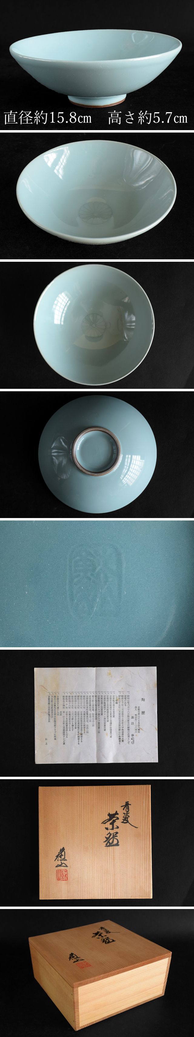 三代 諏訪蘇山 青磁 平 茶碗 共箱 茶道具 收藏