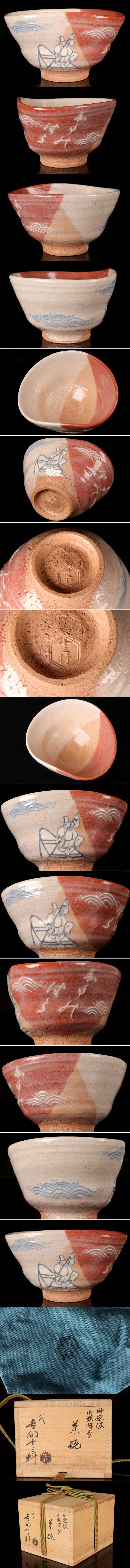 【若福】八代 吉向十三軒『御題波御歌掛分茶碗』御題波 御歌掛分 茶碗 共箱 八代 吉向 十三軒 掛分 茶碗 共箱 共布付 保証品 茶道具 收藏