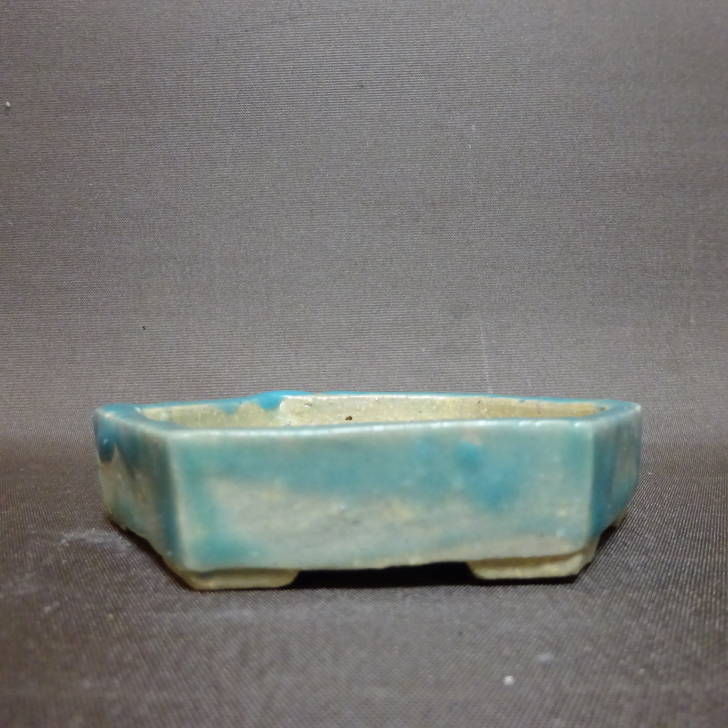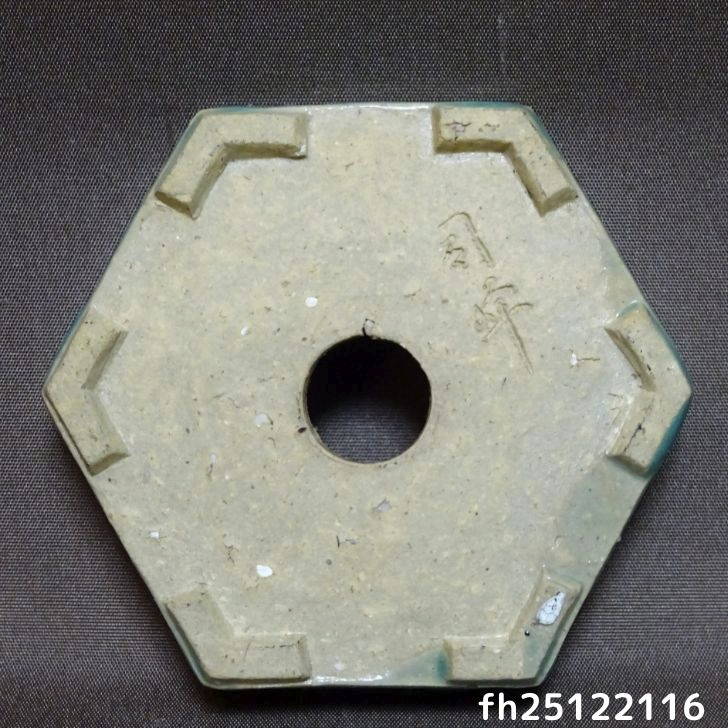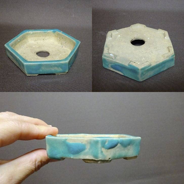 【中古】盆栽鉢 司峰 小鉢 長辺 約 9.5cm 六角鉢 釉薬 現品 中古鉢 收藏