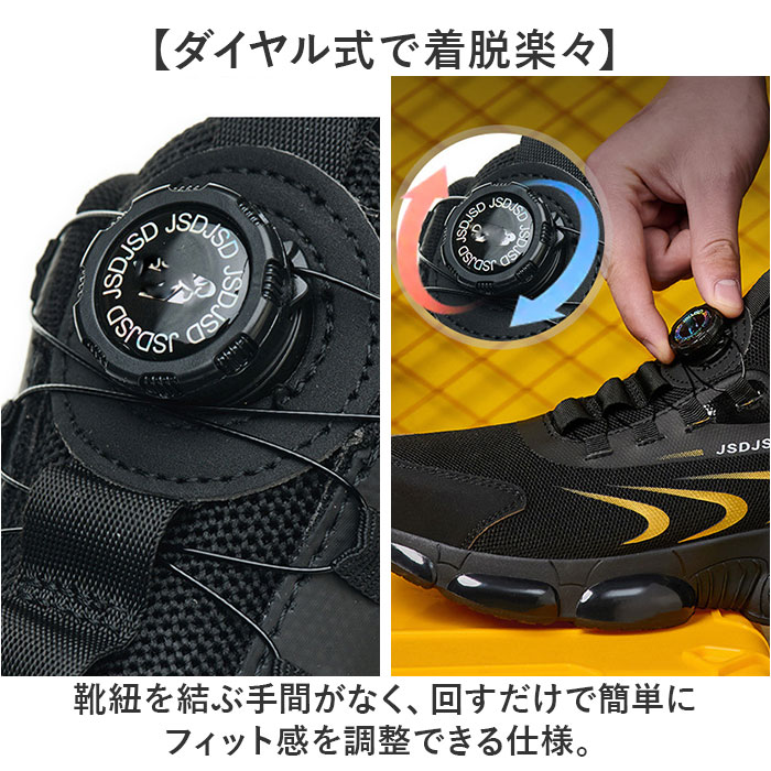 | 商品説明 | ・・【おしゃれに履ける安全靴】スニーカー感覚でシーンを選ばず履ける「セーフティーシューズ」 ・【ダイヤル式で着脱楽々】靴紐を結ぶ手間がなく、回すだけで簡単にフィット感を調整できる仕様。 ・【鋼先芯で足元を守る】つま先に頑丈な鋼製先芯を入れて、重量物の落下から足をしっかり保護。 ・【通気性に優れた設計】蒸れにくい素材を採用し、長時間の作業でも快適な履き心地をキープ。 ・【スニーカー風デザイン】作業靴に見えないおしゃれな見た目で、仕事帰りにそのまま外出もOK。 ・【幅広い現場で活躍】工場や倉庫、建設現場から介護まで、多様なワークシーンに対応〇 |