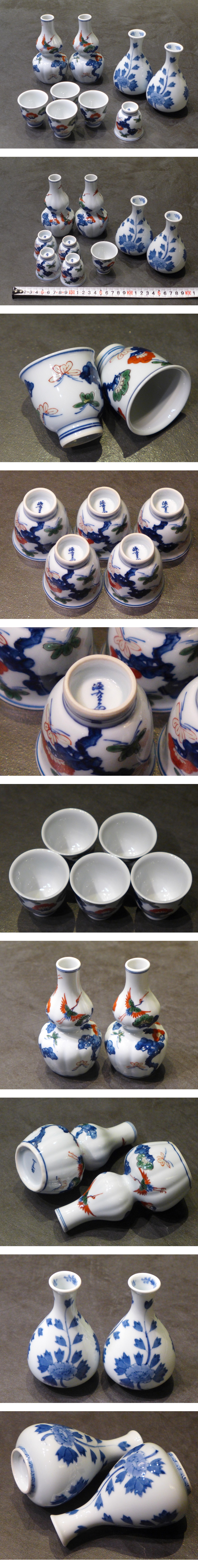 有田焼 源右衛門窯 花鳥図他 徳利 お猪口 9客まとめて 検/セットぐい呑み揃い酒器茶器茶道具煎茶道具 收藏