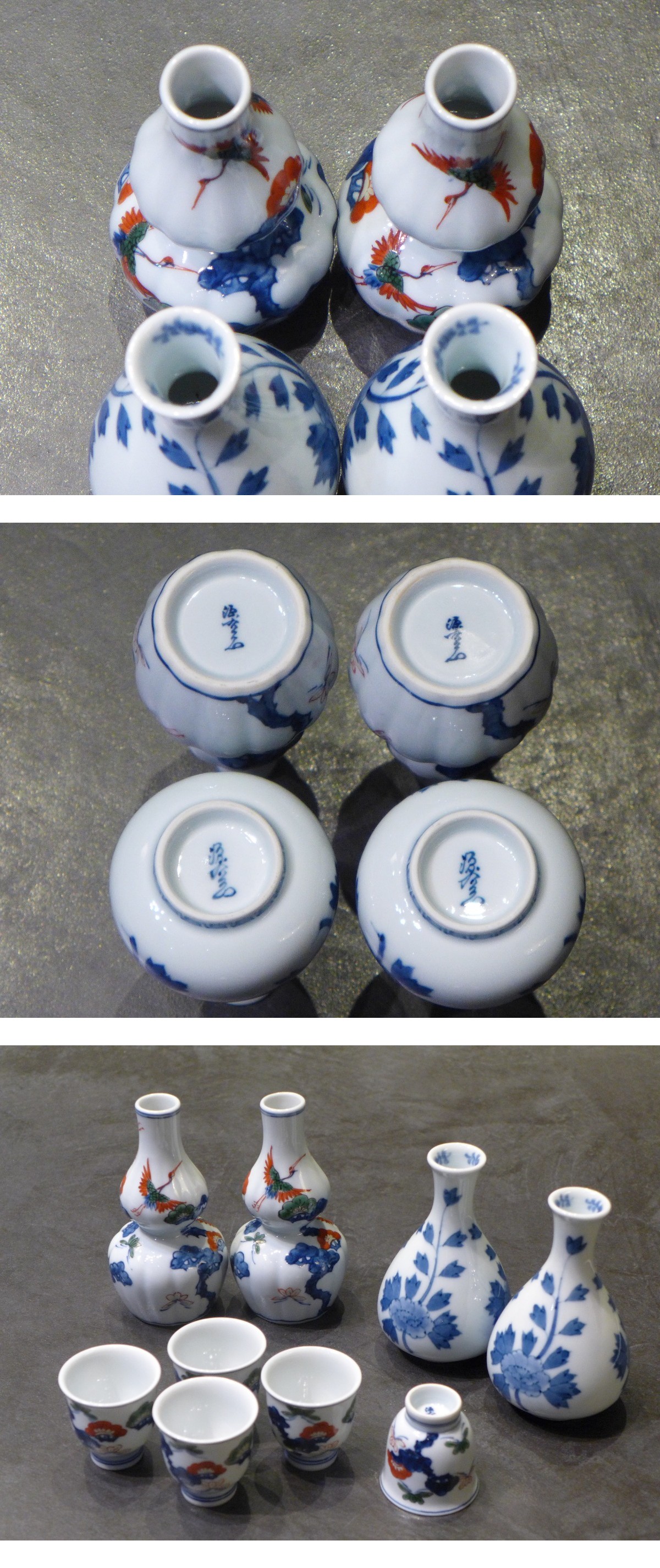有田焼 源右衛門窯 花鳥図他 徳利 お猪口 9客まとめて。主観ですが状態良好かと思われます。