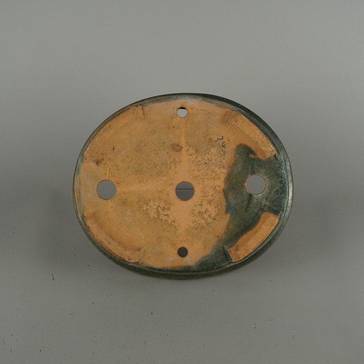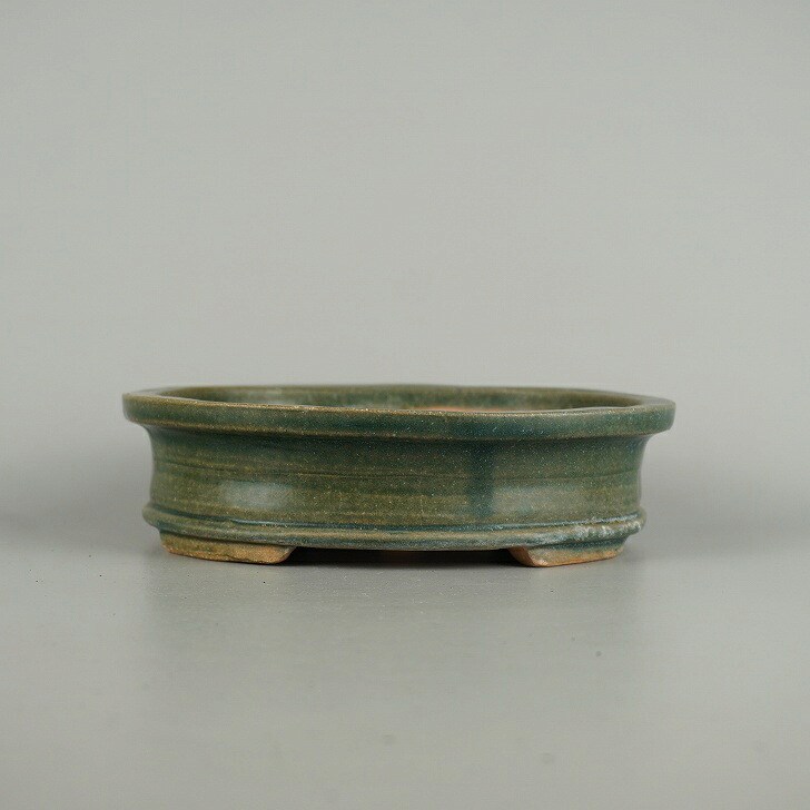 【中古】盆栽鉢 竹鳳 小型 長辺 約 19.8cm 楕円鉢 縁付 釉薬 和鉢 現品 中古鉢 收藏