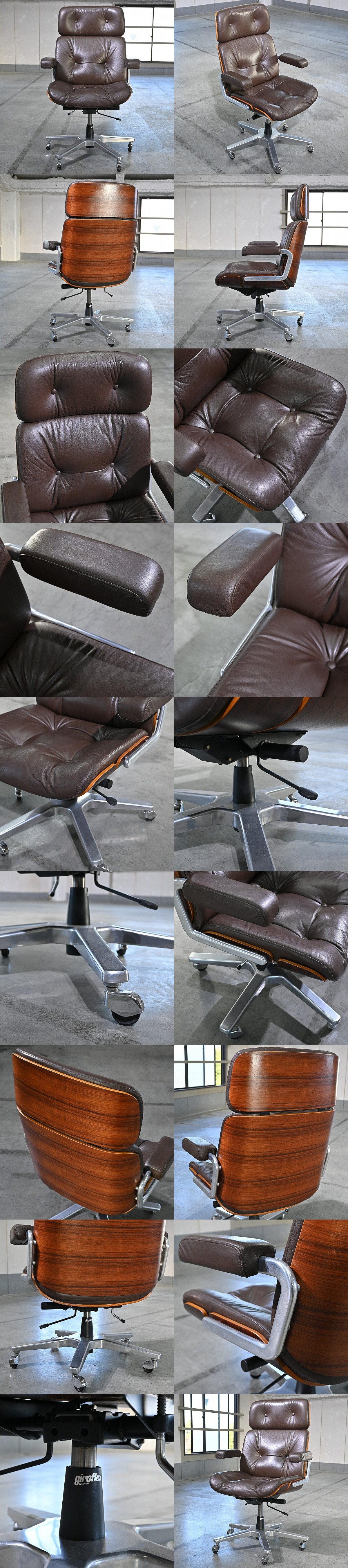 名作 スイス ジロフレックス 40万「82パサール」オフィスチェア M ローズウッド材 プライウッド 本革 ミッドセンチュリー 1人掛け giroflex 收藏