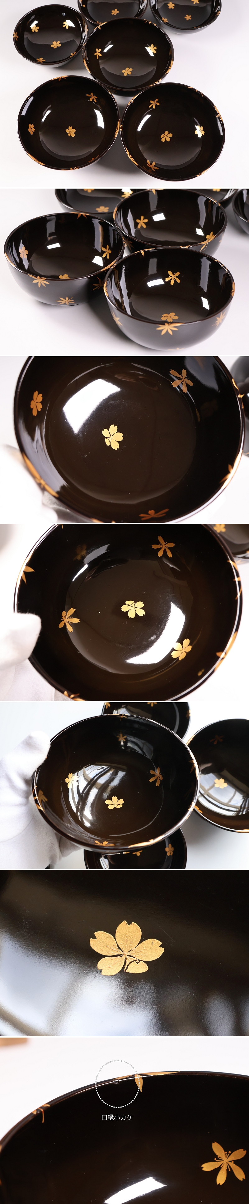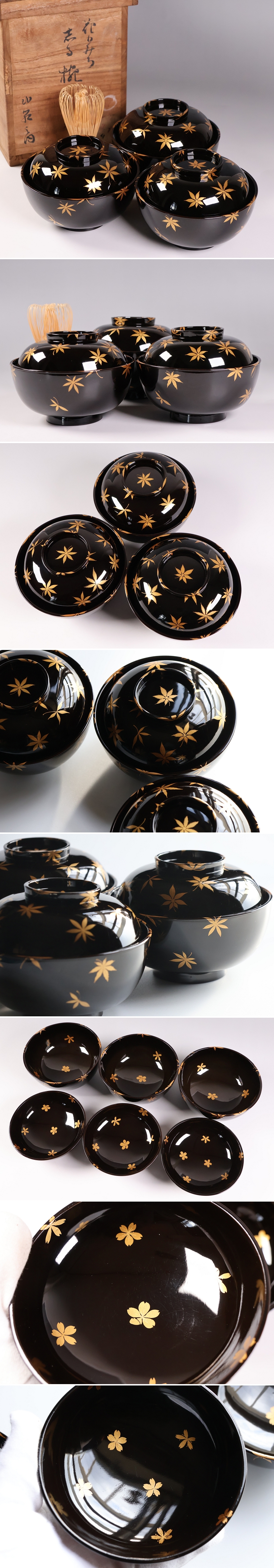 【CM436】天然木漆塗 花のみち 桜紅葉 雲錦金蒔絵 黒汁椀 三客 大正昭和 漆芸 木製漆器 茶懐石道具 / (検) 輪島 加賀 能登 伝統工芸品 收藏