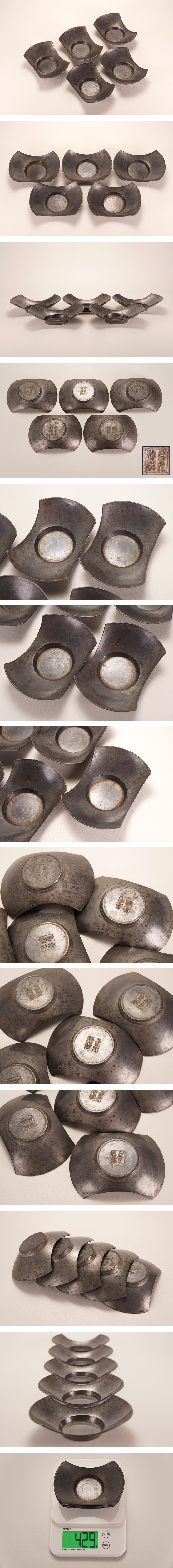 【茶の器特集】NS19◆煎茶道具 貞光〇造 斑錫 分銅形 茶托 5客◆茶道具 茶器 古錫 時代 うぶ 買取品 蔵出し 売り切り 古美術 收藏