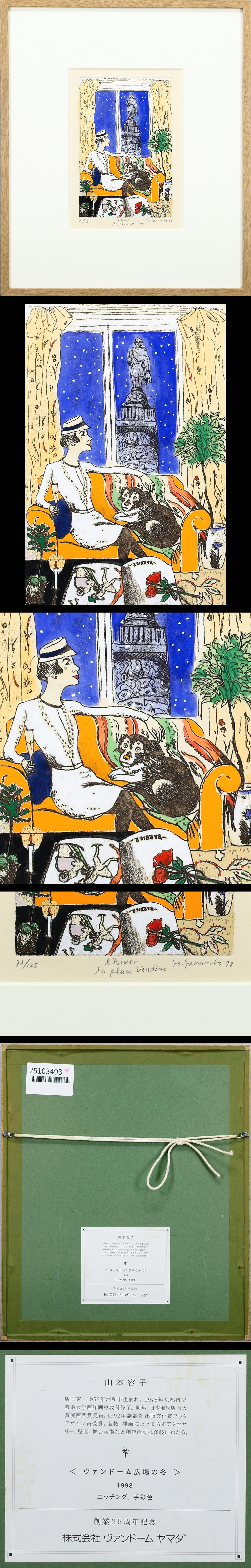 【真作】【WISH】山本容子「ヴァンドーム広場の冬」銅版画 手彩色 1998年作 直筆サイン 証明シール ◆人気作 〇人気版画家 #25103493 收藏