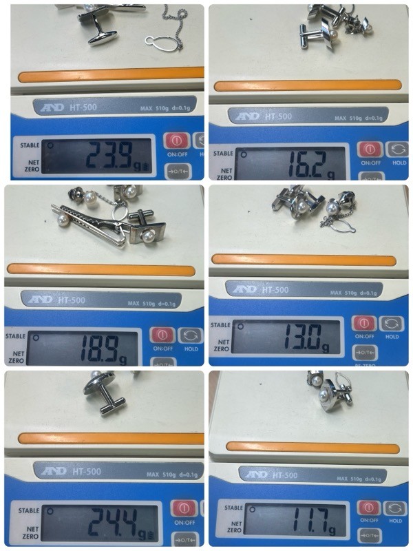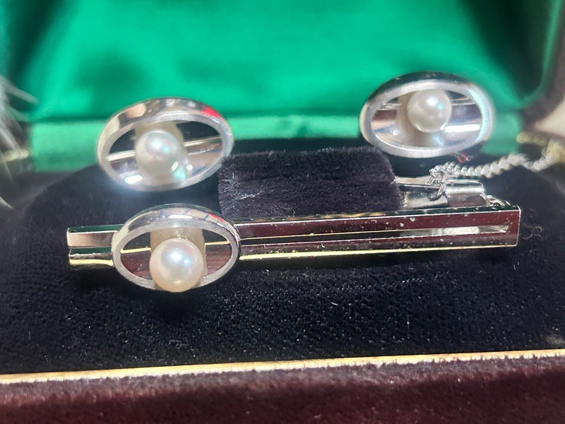 ◇百貨店購入◇格調高き上質真珠【カフス&タイピン SILVER刻印 6組&タイピン単体 10組】ヴィンテージ メンズジュエリー Q11074 收藏