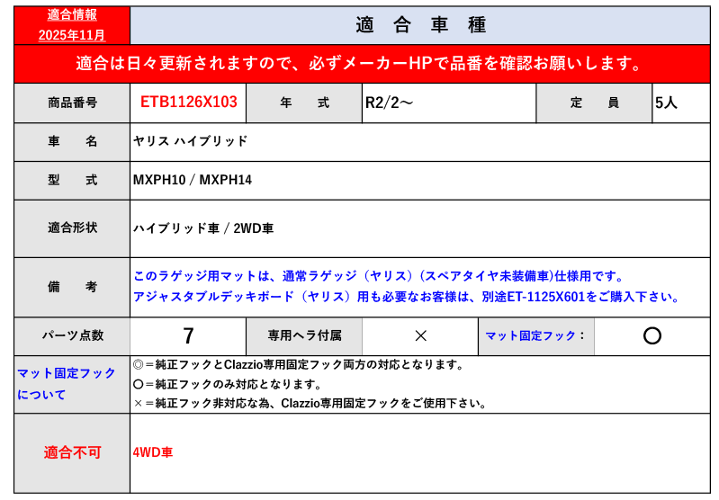 [クラッツィオ]MXPH10,MXPH14 ヤリス ハイブリッド_通常ラゲッジ_スペアタイヤ無(R2/2~)用カスタムフロアマット(ラゲッジ付)[ETB1126X103] 收藏