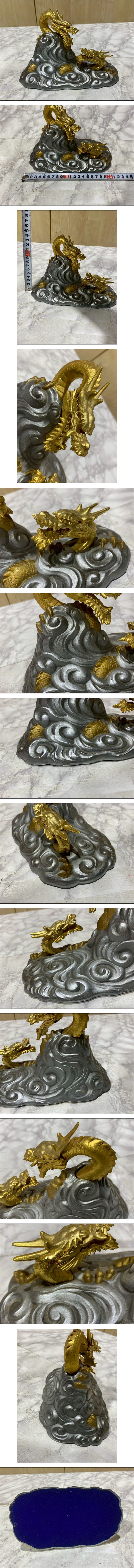 【39-40】美術工芸品 黄金色 登り龍 2頭の龍 開運 縁起物 インテリア 置物 オブジェ 竜 ドラゴン 干支置物 長期保管品 收藏