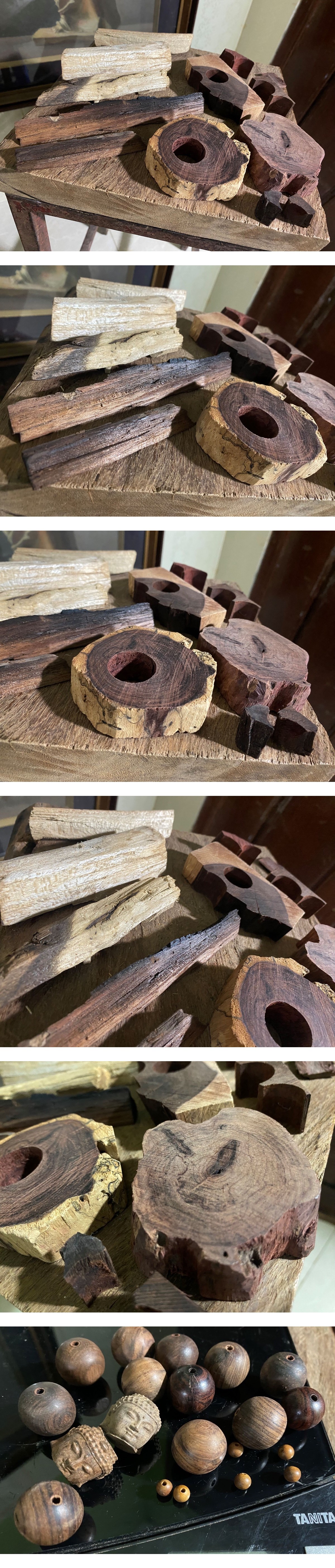 ■カンボジア産の超希少種海南黄花梨(中国の正式学名種別では海南が付きます。)の数珠玉を抜いた後のブロック、小片です。