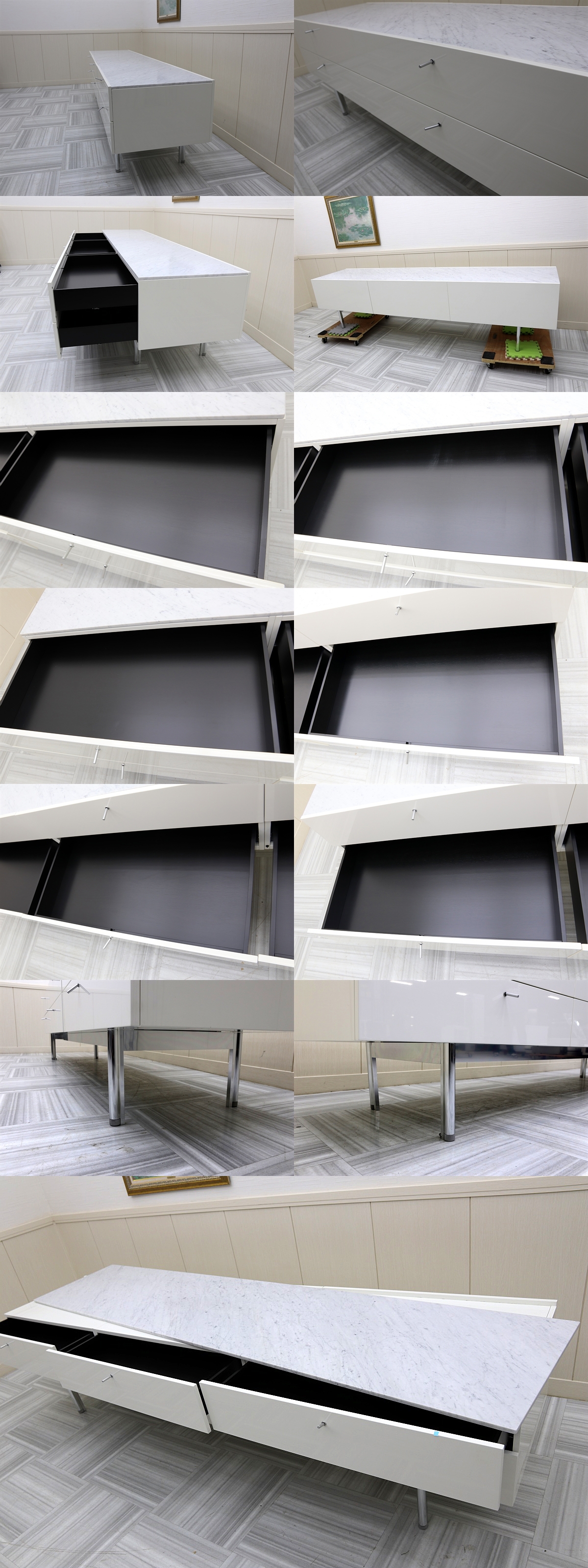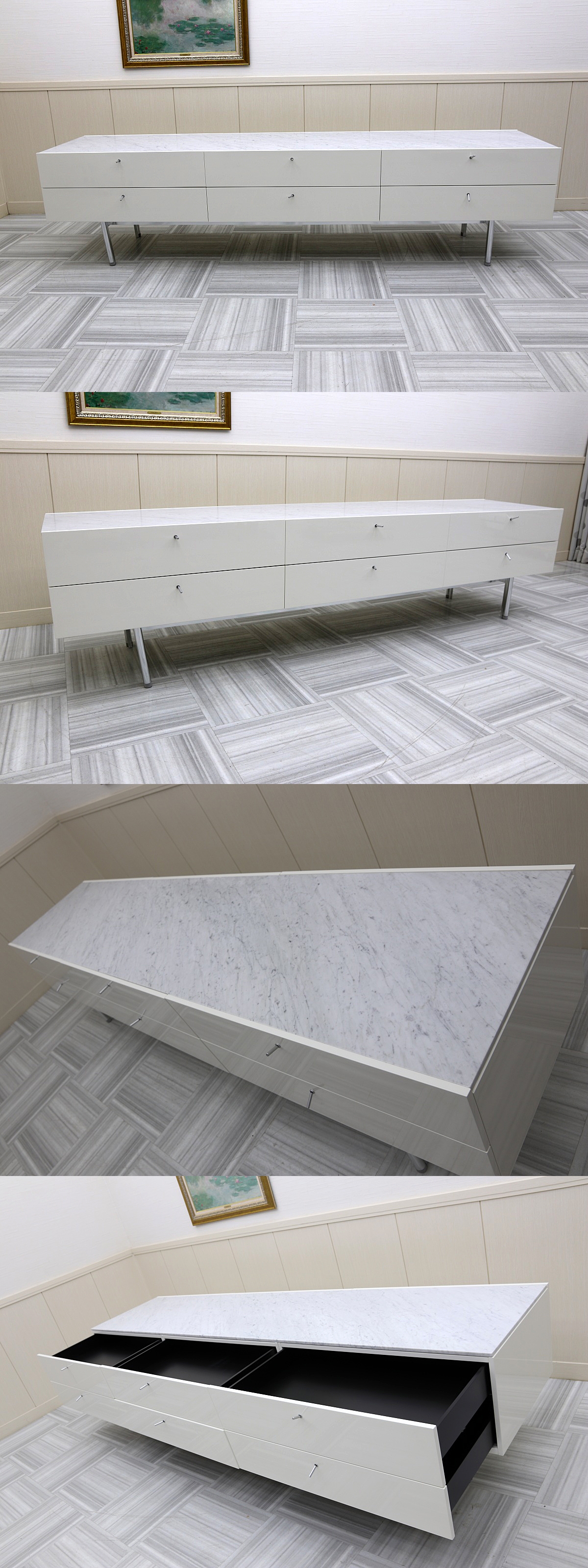 超美品!最高峰 Cassinaカッシーナ 255 FLAT フラット 2段 3連 ドロワー 大理石 キャビネット サイドボード 白 ピエロ・リッソーニ 收藏