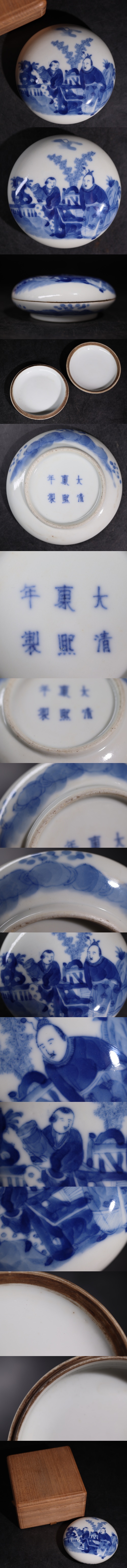 大清康熙年製 底款 染付 人物文 香合 木箱付 / 清 康熙 中国美術 香道具 煎茶道具 .G3321 收藏