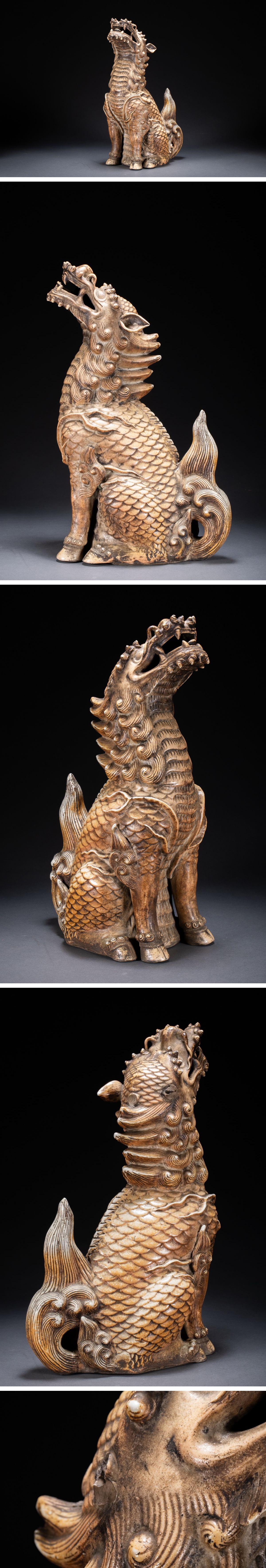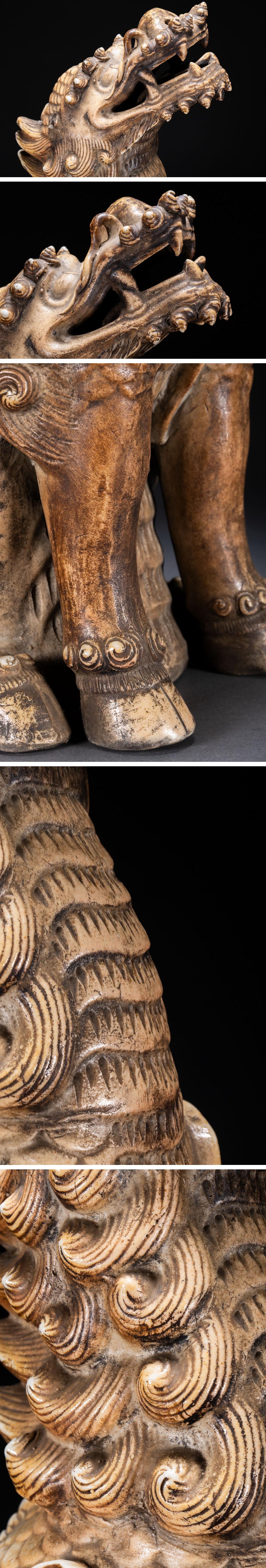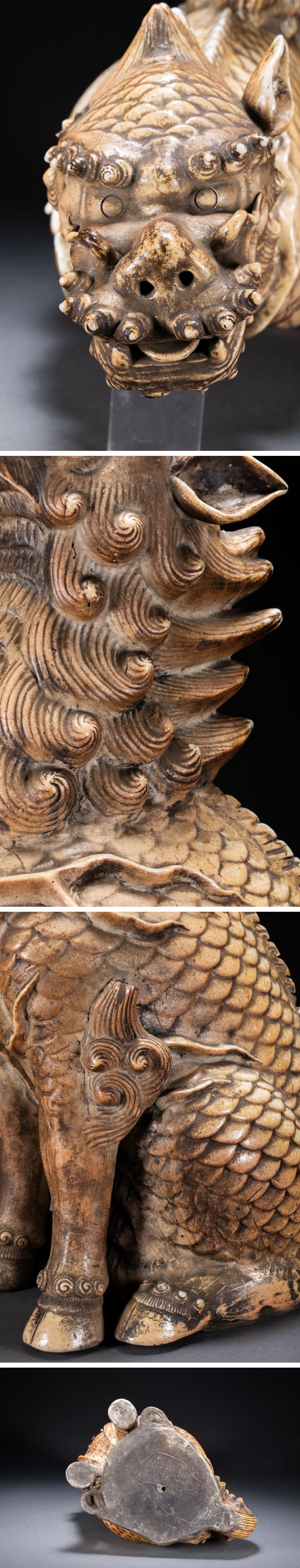 【清】関西某オークション購入 江戸~明治時代 白磁 麒麟紋置物 傷あり 極細工 古置物 古擺件 古美術7L11-22S7 收藏