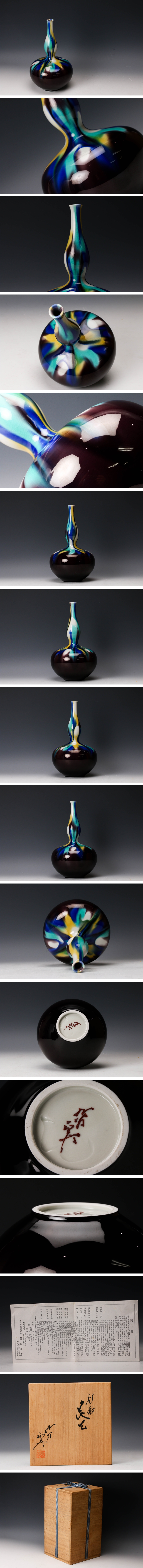 【佳香】人間国宝 三代 徳田八十吉(正彦) 彩釉花生 共箱 栞 本物保証 收藏