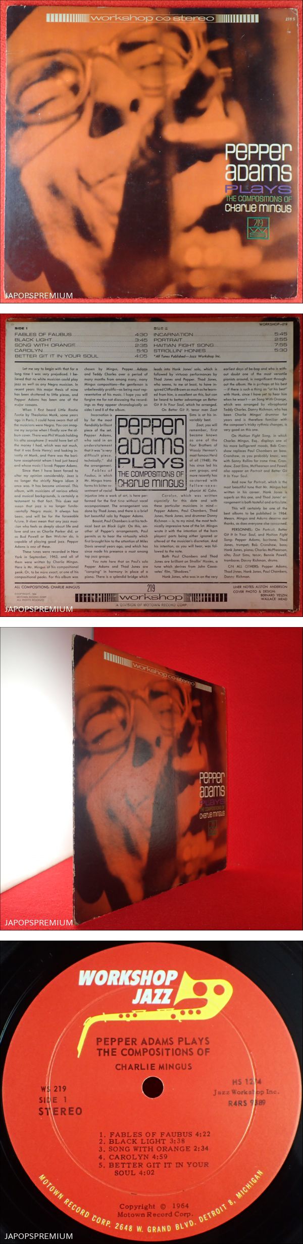 出品品は、MOTOWN傘下の超ドマイナーレーベルWORKSHPからリリースされた、PEPPER ADAMSの秘宝盤、 Plays The Compositions Of Charlie Mingus