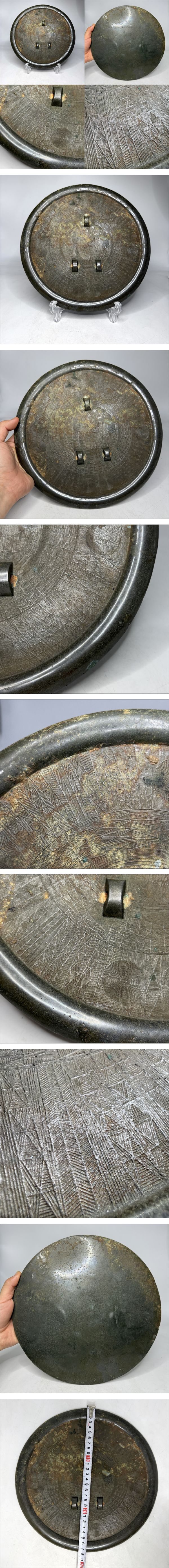時代物 旧家整理品 朝鮮 古銅幾何文鏡 直径約27.5cm(高麗 李朝 鏡 金銅 仏教美術 唐物 中国美術 骨董品) 收藏