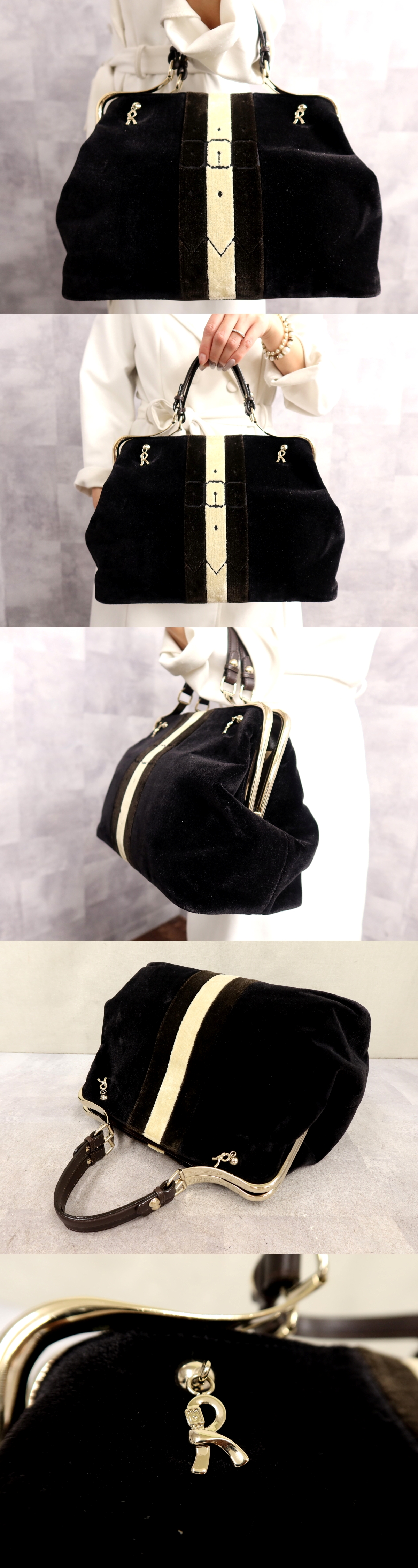 ●超美品●Roberta di Camerino ロベルタ ディ カメリーノ●カラベラ●ベロア●ハンド バッグ●ダークネイビー ブラウン系●B5●Js64735 收藏