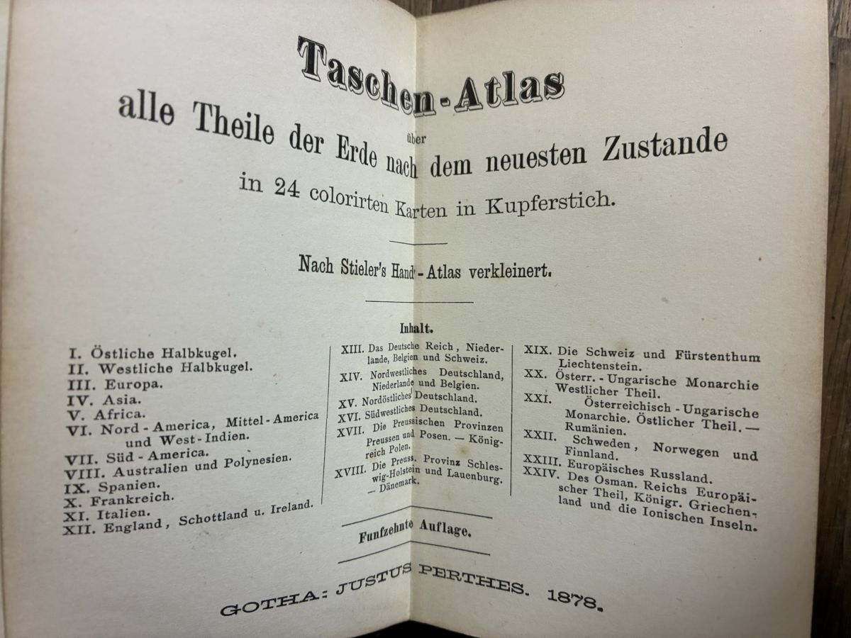 1878年 タッシェン・アトラス(携帯地図帳)Stieler系縮小版 Taschen-Atlas ドイツ語 洋書 古書 收藏