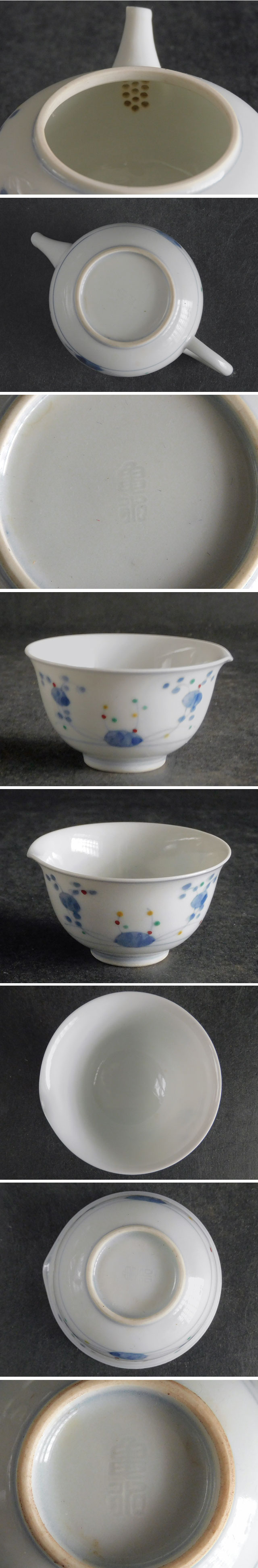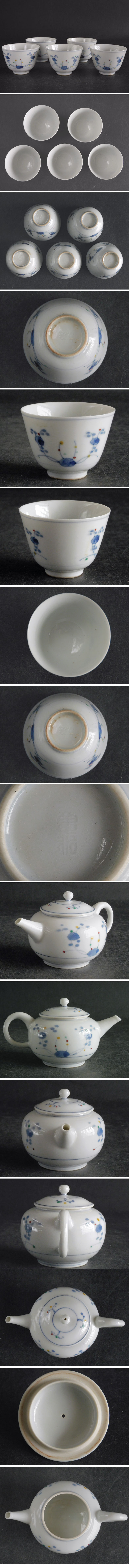 村田 亀水 染付色絵 なずな 玉露 煎茶器 急須 茶碗 冷まし 收藏