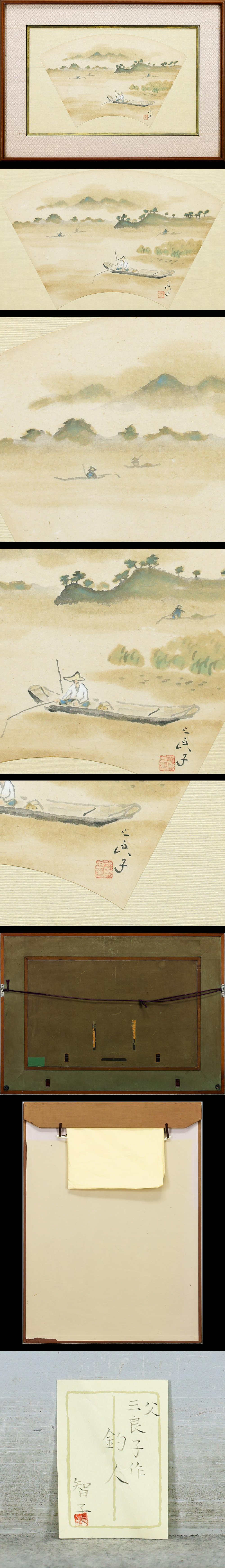 【真作】【WISH】酒井三良「釣人」日本画 8号大 酒井智子鑑定シール ◆水辺に佇む舟人 〇日本美術院監事 水墨画巨匠 #26022244 收藏
