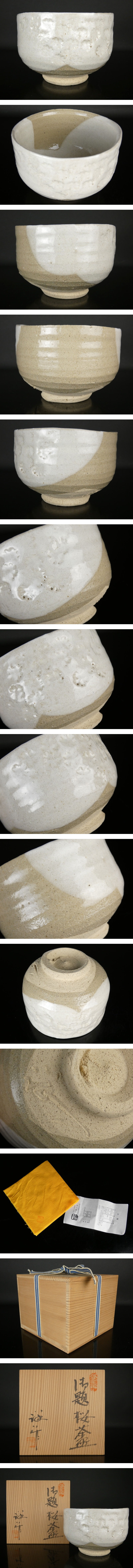 【都屋】谷口祥八 作「御題 桜 茶碗」 共箱 幅 約12cm 高さ 約8.5cm 抹茶碗 棗 香合 蓋置 瀬戸焼 tw28 收藏