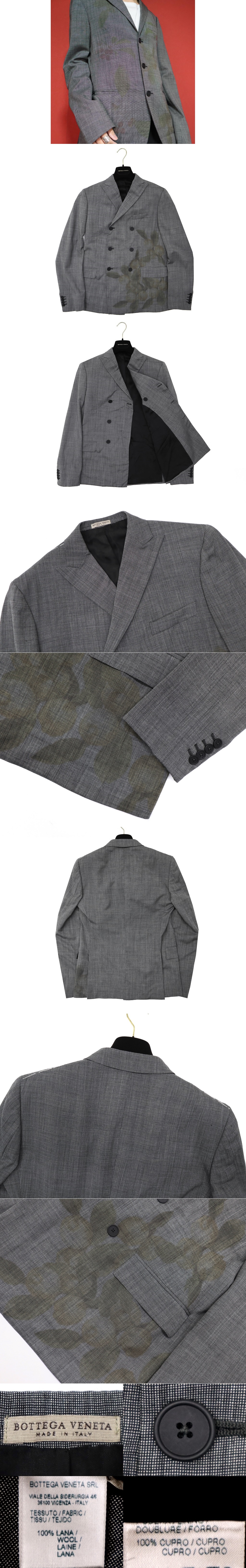 50万新品◆48=M◆ボッテガヴェネタ フルーツグラフィックプリント ダブルブレストウールジャケット グレー灰 1円 收藏