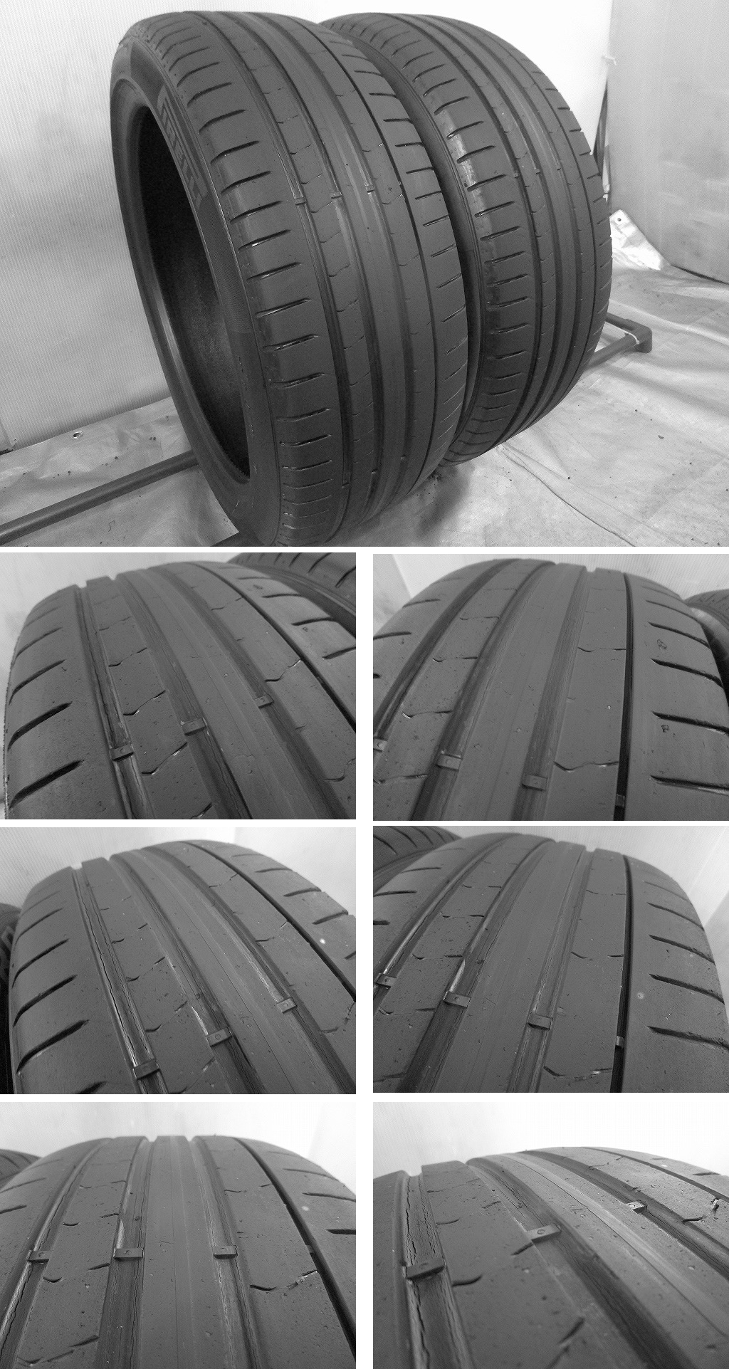 | ■状態: | 2本、中古タイヤ特有のヒビが少しトレッド面の溝に出てきています。 |