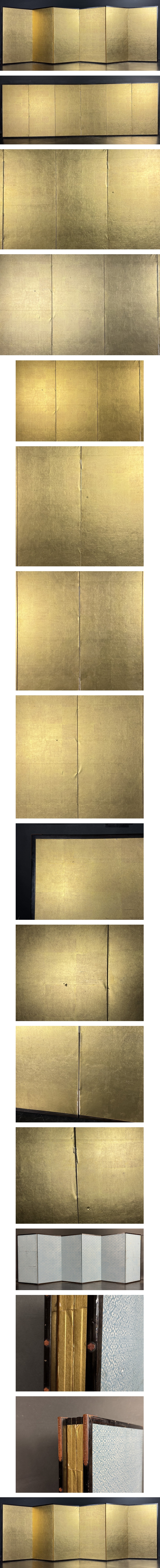 【都屋】金 無地 小屏風 高さ 約88cm 総重量 約5kg 六曲半双 金台 紙本 金屏風 銀屏風 金砂子 Kk7 收藏