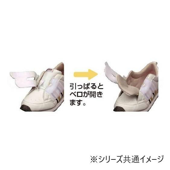 | 足入れ簡単で着脱らくらくの新機能。様々な装具に装着可能なリハビリシーンを想定したシューズです。 |