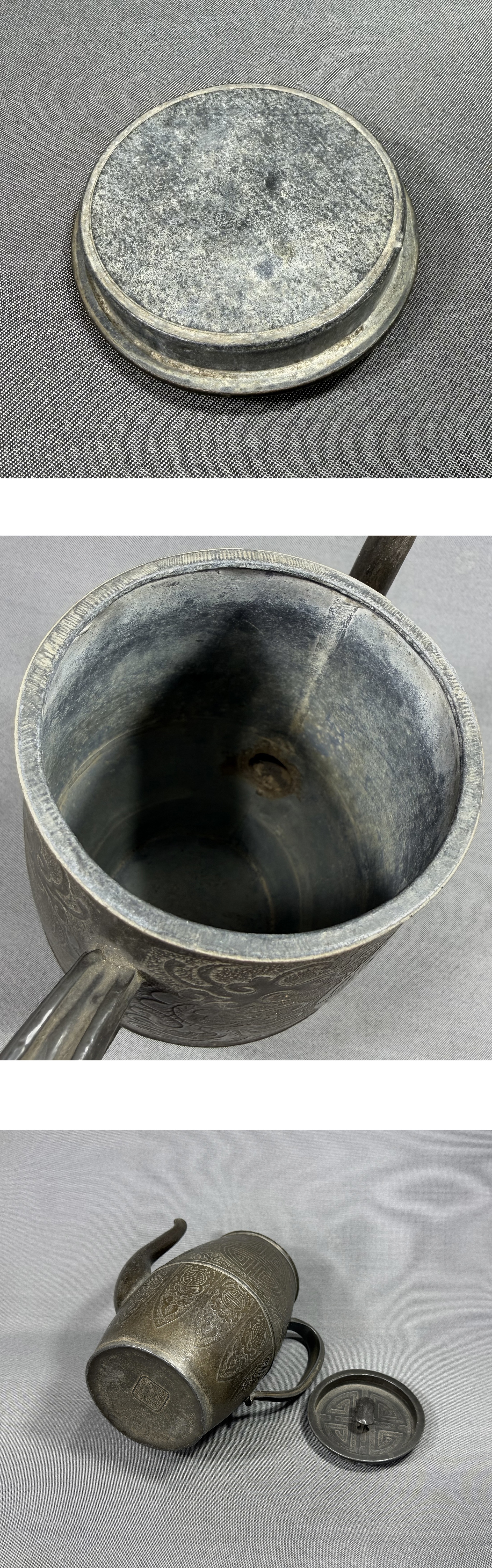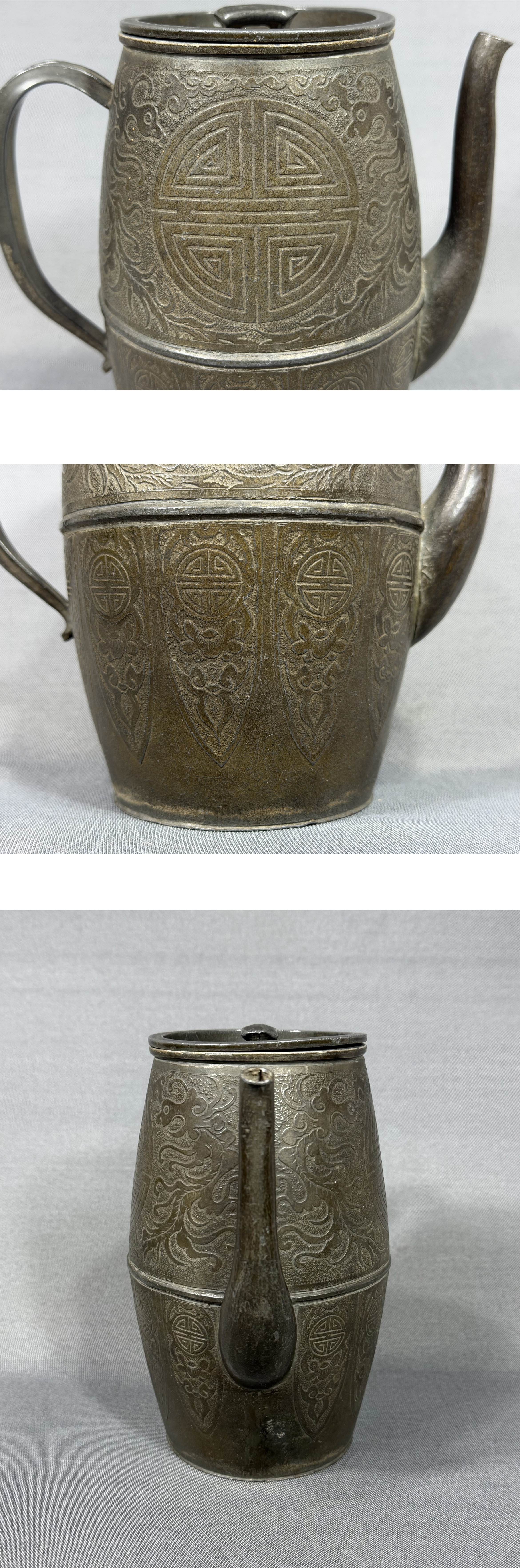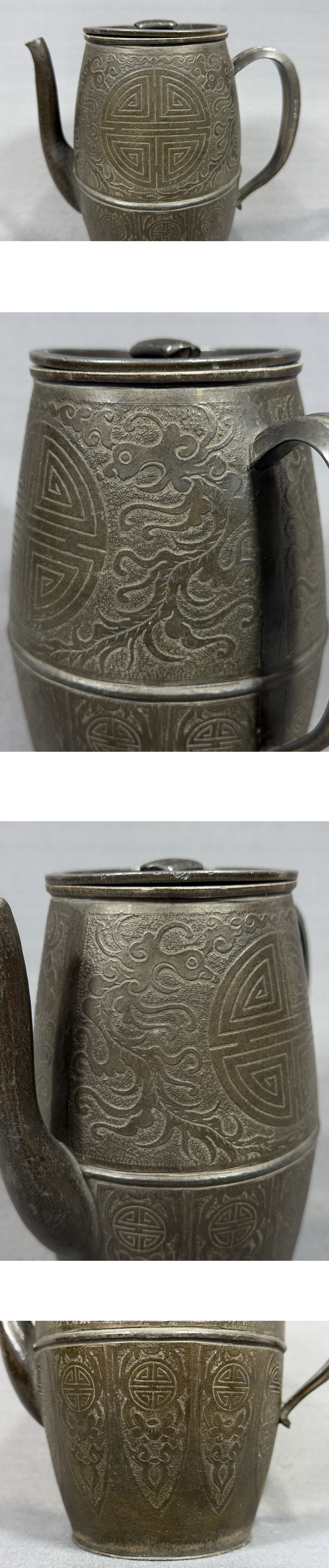 【風車】清代 錫製 鳳紋 寿 茶注 酒壺 款:「盛永興製造洋点包換」▲875g▲中国美術 細密 高級品 骨董品 急須 唐物 收藏