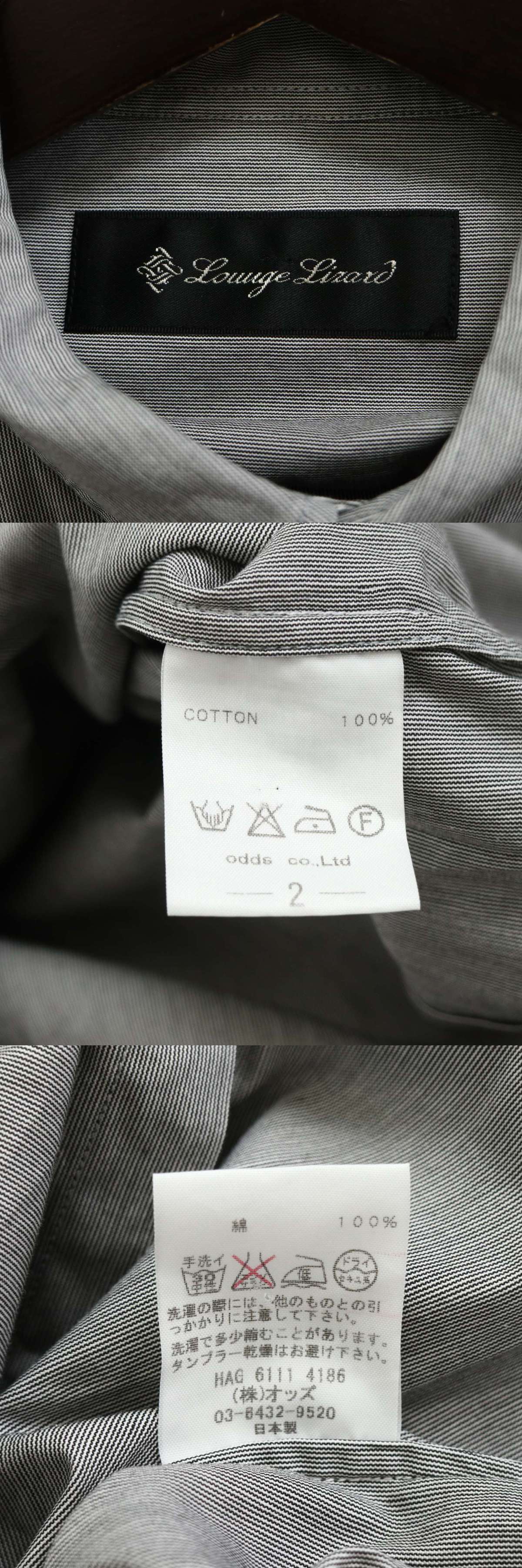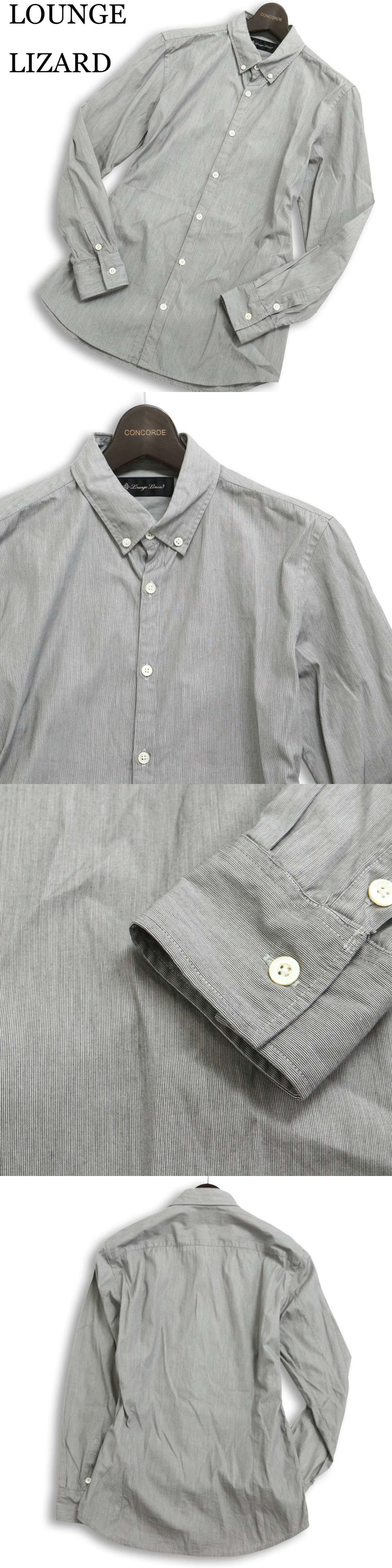 LOUNGE LIZARD ラウンジリザード 通年★ 長袖 スリム ストライプ ボタンダウン シャツ 日本製 Sz.2 メンズ 灰 グレー 收藏