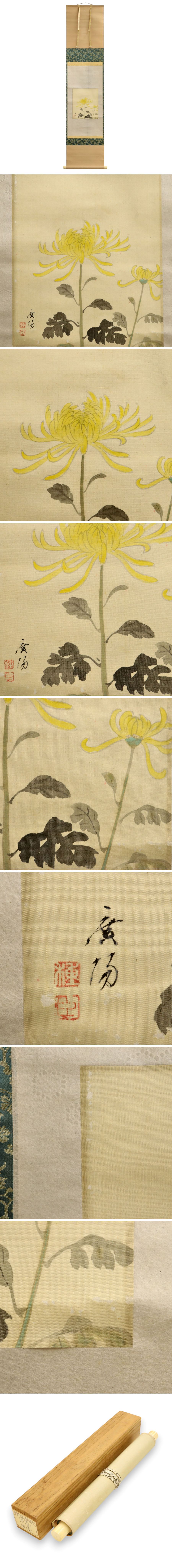 真作保証 大村廣陽 菊図 絹本 箱 備後 掛軸 書画 骨董品 美術品 910000N 收藏