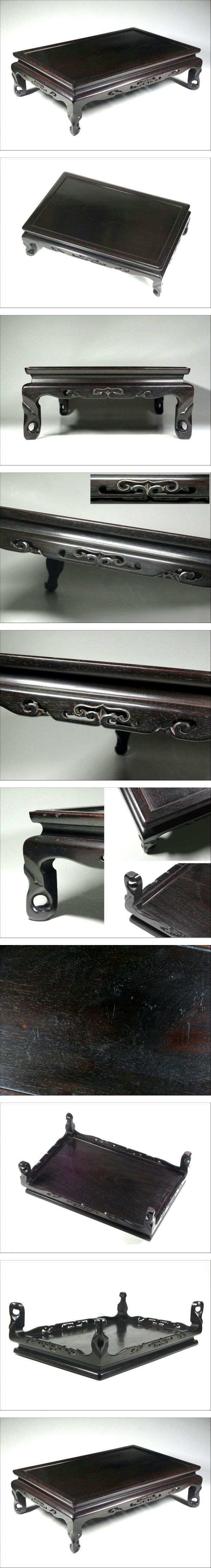 | 商品説明 | 中国美術 唐木 唐草彫 紫檀 幅44.7cm 香炉台 盆栽台 花台です。 時代の汚れ・擦り傷・多少のガタツキは御座いますので御了承下さい。 とても形・彫刻の良い、見映えのする唐木花台です。 [サイズ] 横幅44.7cm 奥行29.5cm 高さ13cm 重量1787g |