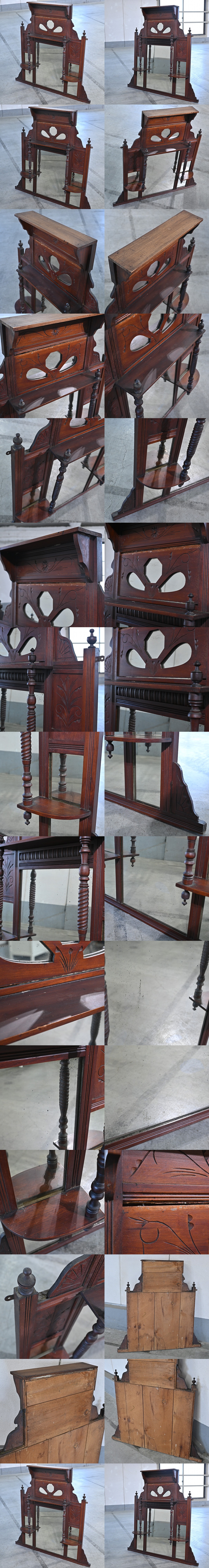 英国アンティーク オーバーマントルミラー マホガニー材 エドワーディアン様式風 彫刻 壁掛け鏡 立て掛け 飾り棚 リビング 玄関 廊下 書斎 收藏