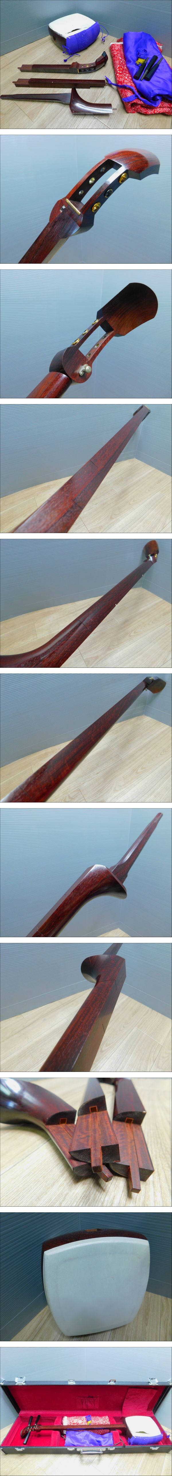 【中棹高級三味線】トチあり 紅木 金細(金ホゾ)1本溝(一段溝) K9刻印あり やや短棹 鳩胸/M590 收藏