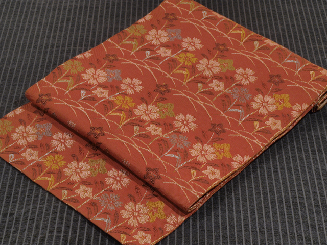 草芝に桔梗撫子文 変わり織 八寸名古屋帯 TAFJ02002風楽 |