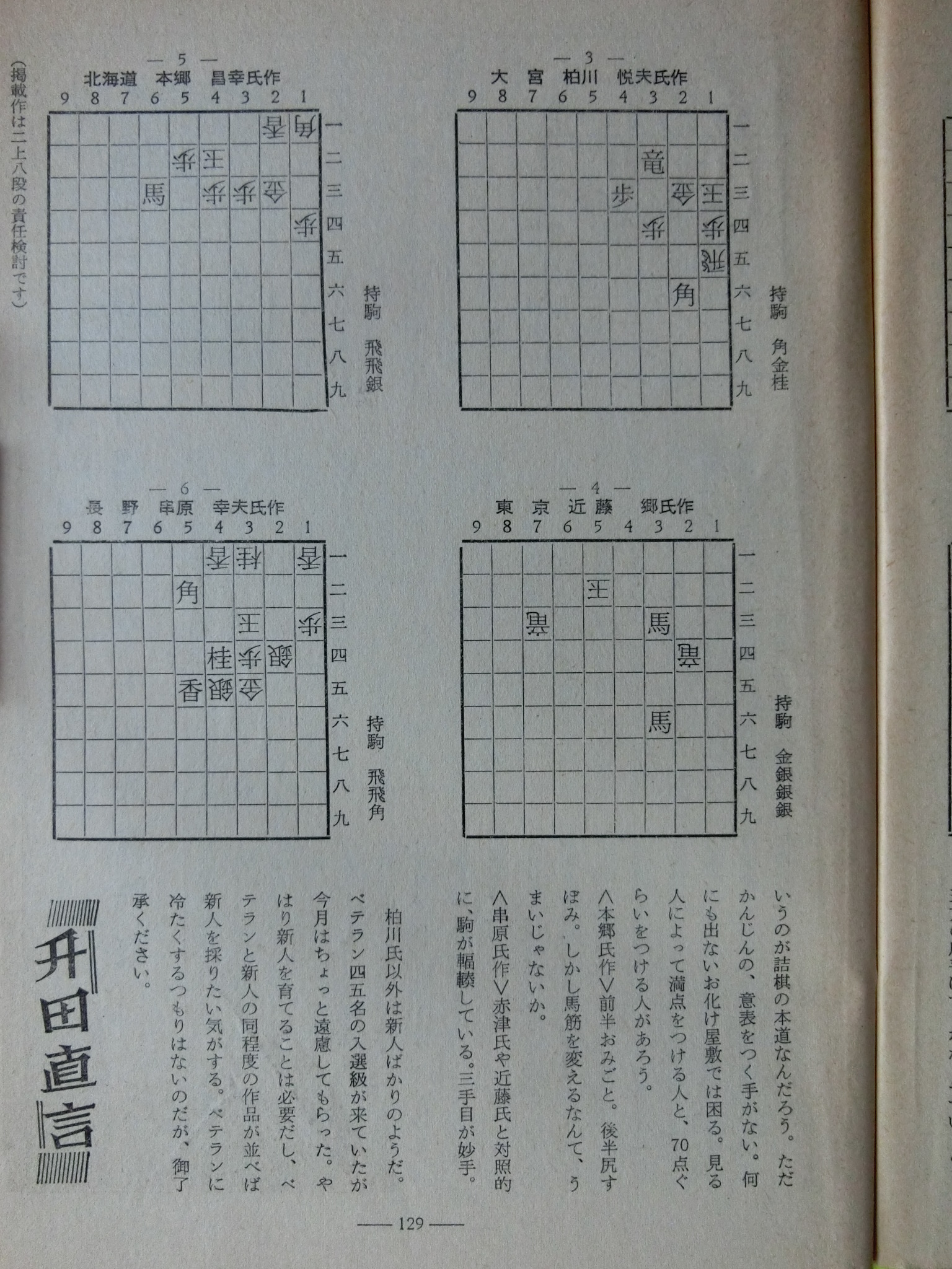 将棋世界 1968_昭和43年10月 1日10月号 大山康晴45才,鍋島古舟,高本功,塚田正夫,根本勝,梶川真治,宮坂幸雄,能智映,金子義昭,吉積喜由,熊谷達人,平川修,里見良夫,建部和歌夫,升田幸三,大内延介,米長邦雄,清水孝晏,山田道美,大内延介 発行日 1968_昭和43年10月 1日 発行 日本将棋連盟 大きさ A5 特別付録 つぎの一手 付 有吉道夫 8段 33才 1935年 7月27日 表紙・秋風景 鍋島古舟 才 カット 高本功 10ページ 三菱カラーテレビ 高雄 電子忍法 三菱電機 裏表紙 東芝電子連動 テレビ 王座 東芝 将棋棋士一覧から 棋士一覧DBから 名人 大山康晴 45才 1923年 3月13日 - 1992年 7月26日 グラビア 第9期王位戦 有吉、第3局に勝つ 有吉道夫 8段 33才 1935年 7月27日 グラビア 中原誠棋聖指導対局 上手、終盤でうっちゃる 吉田紀代子 女性ファン グラビア 高校将棋選手権大会 昭和薬科大学 1200名 グラビア 第4回高校将棋選手権 女性選手に盾を贈る 大山名人 グラビア 福岡八幡中央高 団体優勝 東京の開成高校 グラビア 第4回高校将棋選手権 棋力認定テスト 12ページ どたん場で勝つ 第9期王位戦第1局 大山康晴 王位 45才 1923年 3月13日 - 1992年 7月26日 21ページ 第1期女流 将棋名人戦 10月13日 日曜日 22ページ 有吉の奮起を望む 王位戦 頼尊清隆 東京新聞記者 24ページ 王位・作戦勝ち 第9期王位戦第2局 太期喬也 29ページ 一頁講座 1手でよくなる法 北村昌男 7段 34才 1934年10月30日 42ページ 一頁講座 寄せの心得なる法 桐山清澄 4段 21才 1947年10月 7日 67ページ 一頁講座 棒銀戦法 桐山清澄 4段 21才 1947年10月 7日 95ページ 一頁講座 位取り戦法 桐山清澄 4段 21才 1947年10月 7日 111ページ 一頁講座 早逃げ 桐山清澄 4段 21才 1947年10月 7日 30ページ 勝負師の記録 師弟の情を超えて 天狗太郎 (山本亨介) 46ページ 飛車その働きと感覚 4 す抜き 内藤國雄 8段 29才 1939年11月15日 土居教室 44ページ 詰めと必死 4 鮮やかな封鎖法 土居市太郎 名誉名人 81才 1887年11月20日 - 1973年 2月28日 48ページ 十月のこと 関根名人の手紙 建部和歌夫 8段 59才 1909年 7月25日 - 1974年 9月 4日 49ページ 十月のこと 関根名人の手紙 建部和歌夫 8段 59才 1909年 7月25日 - 1974年 9月 4日 50ページ 初級教室 好手と凡手 10回 原田泰夫 8段 45才 1923年 3月 1日 - 2004年 7月11日 56ページ 一年で全読者に初段を 授与 66回 3問 宮坂幸雄 7段 39才 1929年11月30日 60ページ 一年で全読者に初段を 授与 64回 解答 宮坂幸雄 7段 39才 1929年11月30日 58ページ 昇段コース試験問題 46回 3問 松田茂行 8段 47才 1921年 6月28日 - 1988年 8月 2日 松田茂役 63ページ 昇段コース試験問題 44回 解答 松田茂行 8段 47才 1921年 6月28日 - 1988年 8月 2日 松田茂役 66ページ 初段コース入段者 氏名 66ページ 初段コース入段者 氏名 68ページ 中原誠棋聖指導対局 上手、終盤でうっちゃる 高柳敏夫 8段 48才 1920年 2月20日 - 1986年 9月27日 79ページ 第4回高校将棋大会 団体も個人も優勝 福岡八幡中央高 80ページ 第4回高校将棋大会 女子個人戦決勝 尾関さん 大川さん 84ページ 第4回高校将棋大会 手に汗握る攻防戦 団体決勝 86ページ 第4回高校将棋大会 勝ち将棋にも危機はある 団体決勝 88ページ 第4回高校将棋大会 形で覚える盲点 団体決勝 90ページ 第4回高校将棋大会 開成校の貴重な1勝 団体決勝 92ページ 第4回高校将棋大会 児玉君、迅雷の寄せ 団体決勝 94ページ 第4回高校将棋大会 女子個人戦決勝 尾関洋子 大川祐理子 96ページ 順位戦中間展望 順位戦 吉井栄治 朝日新聞観戦記者 第23期順位戦星取表 102ページ A級 成績表 11名 43年度前期 103ページ 関東奨励会A組 成績表 9名 103ページ 関西奨励会A組 成績表 10名 104ページ 関東奨励会B組 成績表 24名 105ページ 関西奨励会B組 成績表 15名 106ページ 逆転の奇手 梶一郎 8段 57才 1912年 6月 6日 - 1978年 1月20日 116ページ あたまの体操をどうぞ つぎにきびしい手 117ページ あたまの体操をどうぞ つぎにきびしい手 118ページ あたまの体操をどうぞ 8月号の解答 120ページ 受けと反撃 10 厳しい受けと反撃 加藤一二三 8段 28才 1940年 1月 1日 128ページ 詰将棋サロン 2題 選 升田幸三 9段 50才 1918年 3月21日 - 1991年 4月 5日 129ページ 詰将棋サロン 4題 選 升田幸三 9段 50才 1918年 3月21日 - 1991年 4月 5日 130ページ 第2回詰将棋コンクール 入賞発表 宿利誠 大正区 17才 1950年12月21日 131ページ 第2回詰将棋コンクール 入賞発表 宿利誠 大正区 17才 1950年12月21日 133ページ 詰将棋学校 講師 清水孝晏 40才 1928年 詰将棋作家 134ページ 解答 講師 清水孝晏 40才 1928年 詰将棋作家 135ページ 解答 講師 清水孝晏 40才 1928年 詰将棋作家 137ページ 将棋小唄 142ページ 巻末 編集室 古本です。 神経質な方の入札はご遠慮ください。 背表紙の一部(ホッチキス部分)や本の中等をセロテープで補修している本もあります。 経年による劣化(すれ、ヤケ、シミ、折れ、小さい破れ、汚れ等)があります。 落書き、ページ割れ,ページ抜け、見落とし等が、あるかもしれません。 気になる点などあれば、事前に質問して下さい。 この商品の発送後は、クレーム、返品は、お断り致します。 送料200円 ----------------------------------------