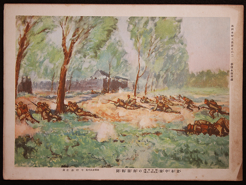 K0705-4-2 戦前 満州事変大画譜2 参謀本部所蔵 倉本中隊の南嶺戦闘 陸軍歩兵中佐 今村嘉吉画 大日本帝国 陸軍 海軍 收藏