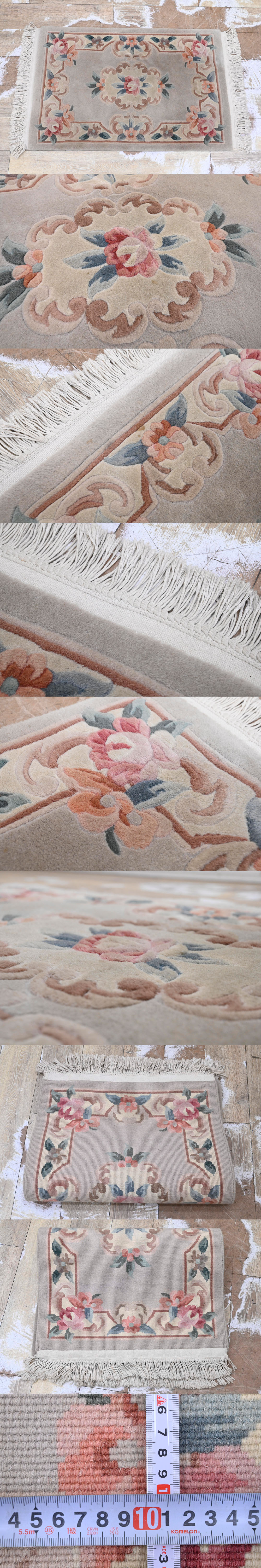 ----------------------------------------------------------------------------------------- ●送料や注意事項は必ずご確認下さい。落札後にトラブルになるケースが増えております。● ◆コンディションは写真・文章にて記載して有りますが、全てのキズの写真は掲載致しておりません。大きなダメージを除き見落とし、記載漏れが有る事はご了承下さい。 ◆当サイトにて出品する商品は多種多彩で、当方商品知識の無い物も多数ありますので落札後の質問やメンテナンス等にはお答えできません。 ◆入札された時点で、画像、文章をご理解していただいたものと判断させていただきます。不明な点は前もってQ&Aからお願い致します。入札後の質問やお電話等でのキャンセルは一切受け付け致しません。 ◆商品説明に「ノークレーム」と記載しているものに関しては、如何なる状況で届いても保証致しません。詳しくは注意事項の「商品到着後について」の最後に記載しておりますのでご確認下さい。 ---------------------------------------------------------------------------------------- ウール製の段通の出品です。 古来より「幸福」や「長寿」と言った人々の願いを込めて一つ一つ丁寧に丹念に仕上げられた、 悠久への思いの込められた中国伝統の工芸品です。 その光沢と織り目の密度の高さは三大最高級絨毯(ペルシャ・中国・トルコ) の中でも定評があります。 また、世代を超えて受け継がれるほどに堅牢なもので、お手入れしだいでは 何十年も使えると言われています。 【コンディション】 シミ、薄汚れ等使用感有ります。 | ||