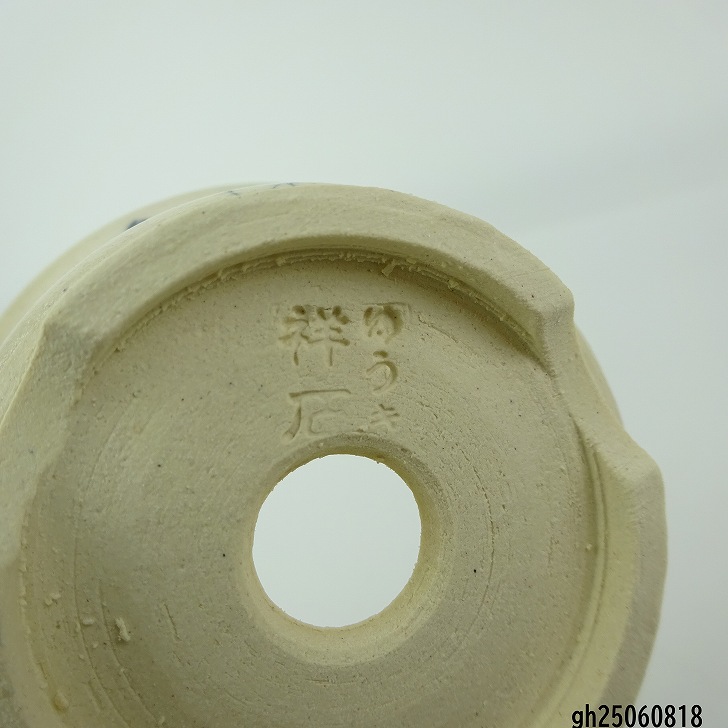 盆栽鉢 ゆうき祥石 小鉢 長辺 約 6cm 丸鉢 絵鉢 猫 ネコ ねこ 釉薬 観賞用 現品 新品 收藏