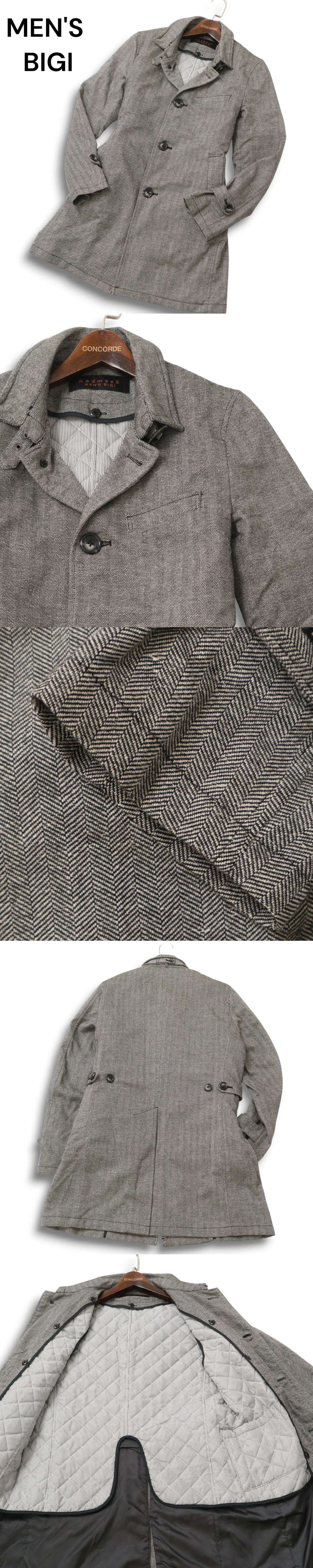 RedmesS MENS BIGI メンズビギ 秋冬 中綿ライナー★ ウール混 ツイード ヘリンボーン コートSz.3 メンズ 收藏