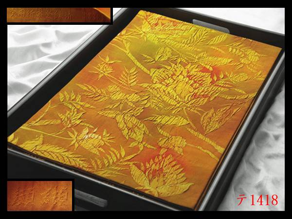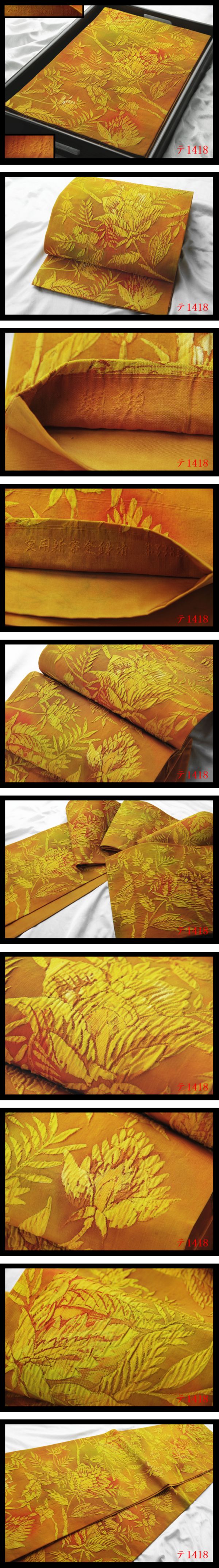 蔵【テ1418】西陣逸品 名門老舗【渡文】 纐纈 唐草更紗紋 山吹色 正絹全通高級美術袋帯 新品同様◇検◇簪着物名古屋帯和装小物帯締め 收藏